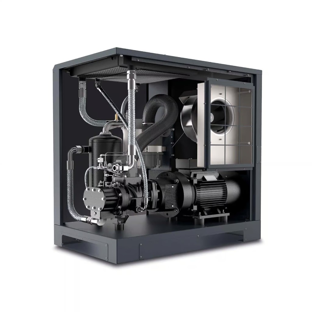Compresor rotativo de tornillo, de transmisión directa. Motor IE4 de imanes permanentes. Velocidad variable.
