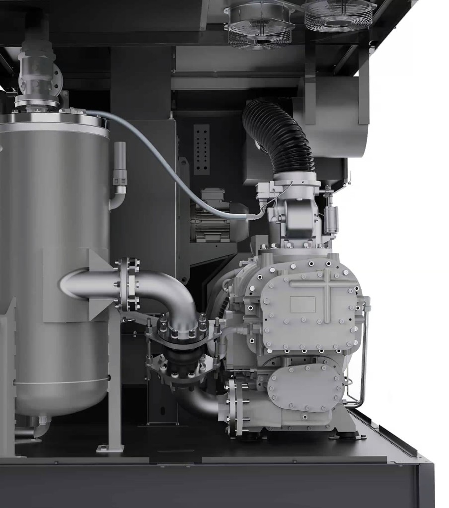 Compresor rotativo de tornillo, de transmisión directa. Doble Etapa. Motor IE4 de imanes permanentes. Velocidad variable.